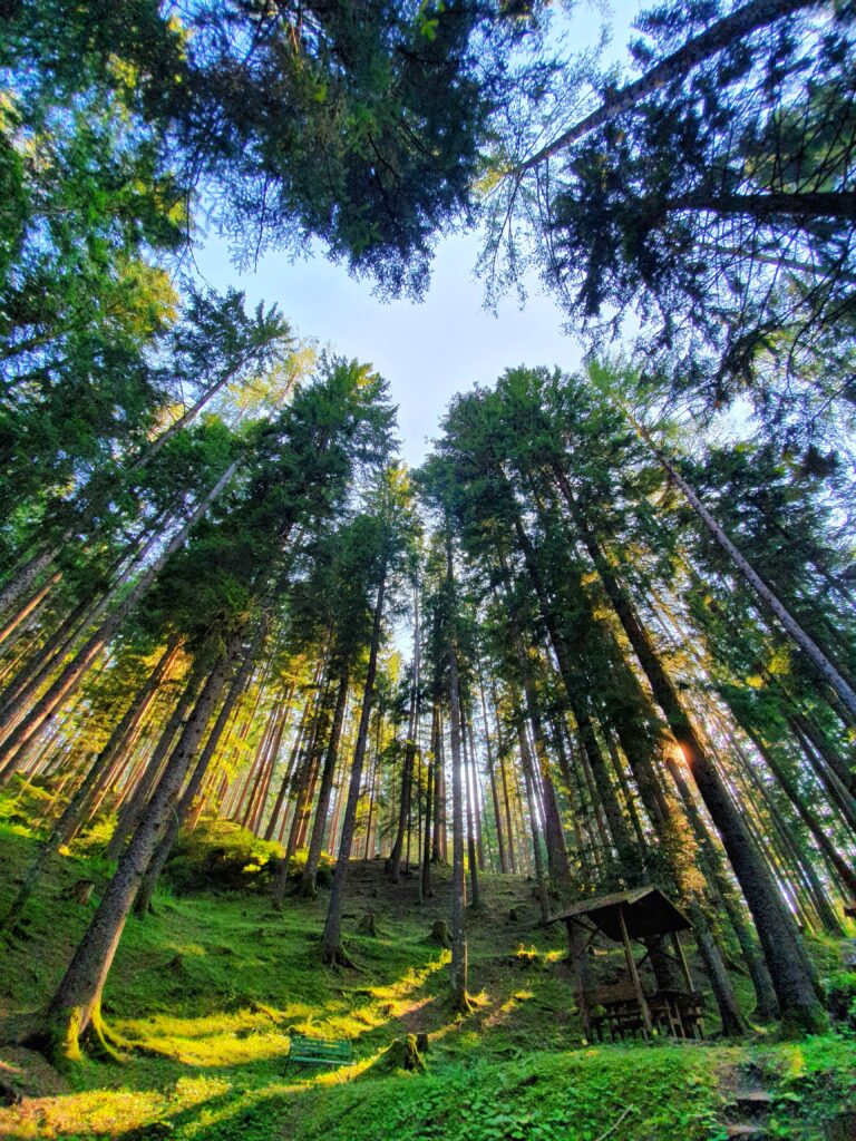 Descrizione percorso: Facile passeggiata adatta a tutti in un bosco magico di altissimi abeti bianchi, fra muschio, ruscelli, rugiada e il sole del mattino. Dislivello 50 m.