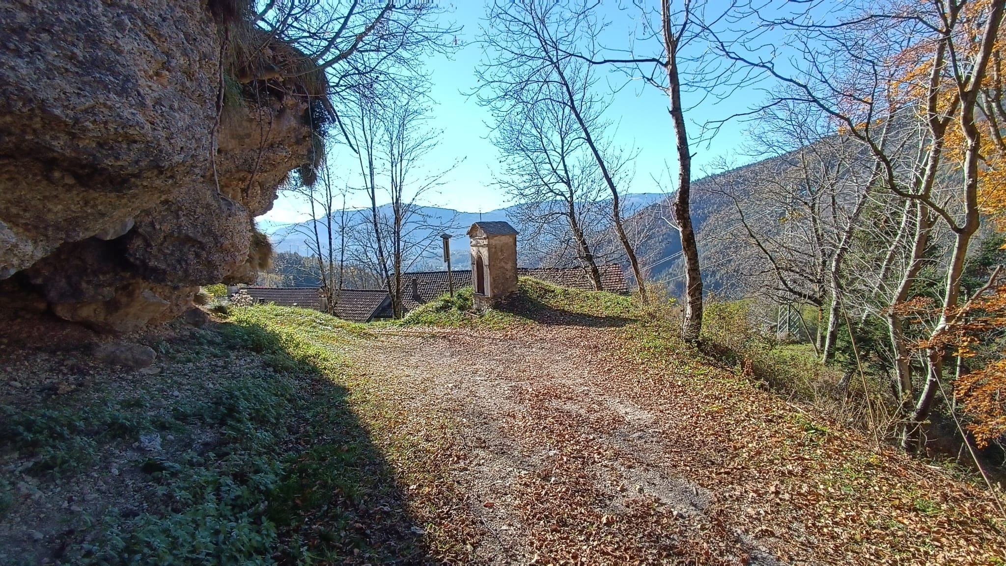 Descrizione percorso: Escursione ad anello nei boschi attorno alla Valle del Torrente Lavadin, lunghezza 8 km, dislivello positivo 300 m con visite alla Chiesa della Madonna di Parè e alle borgate storiche di Giaon e Navasa.